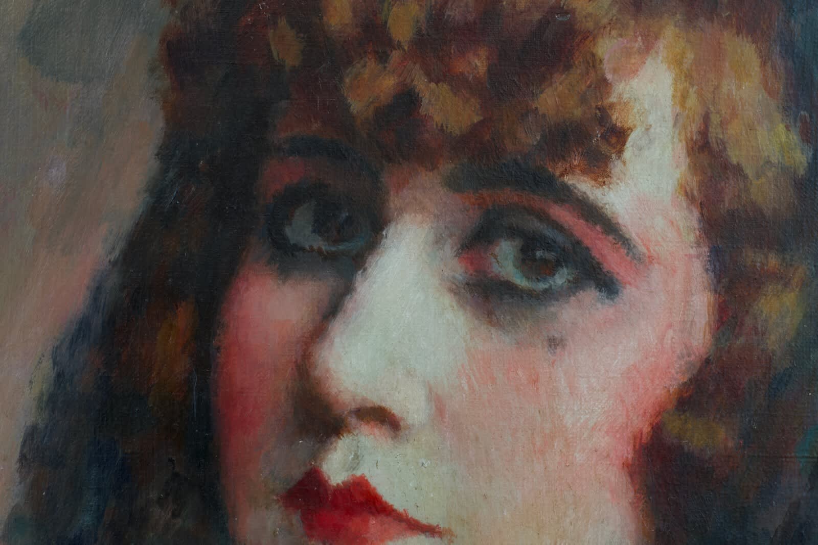 Ancien beau tableau portrait jeune femme rousse mantille Charles Guerin 1900 AN