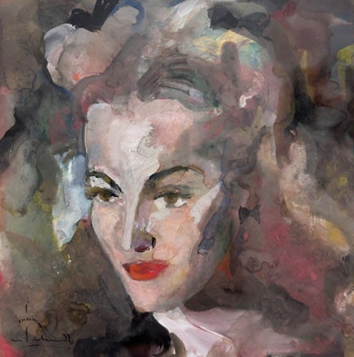Dessin ancien Christian Schmidt portrait jeune fille aquarelle expressionniste