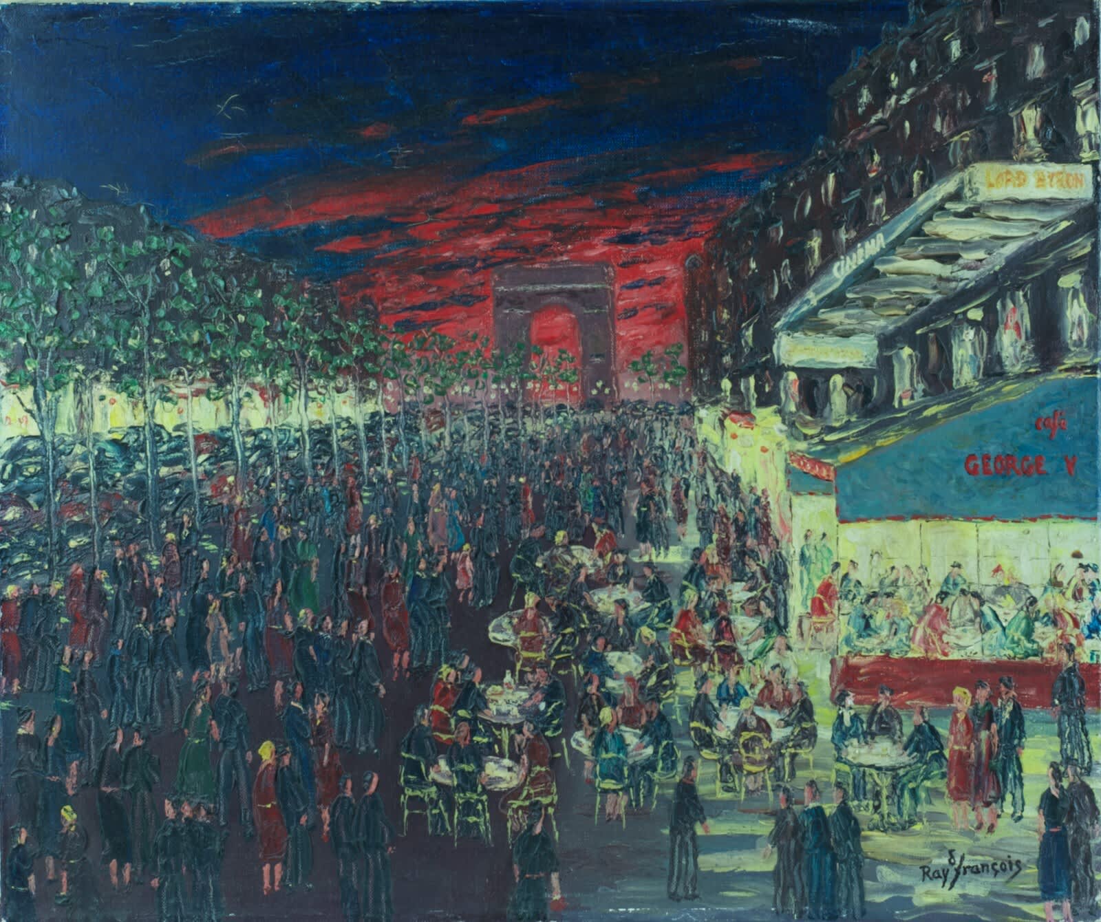 Tableau ancien Paris les Champs-Élysées Raymond François Georges V cinéma