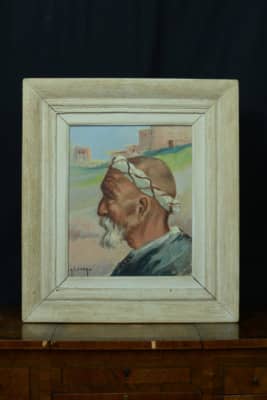 Tableau ancien orientaliste Maroc portrait homme Kasbah Diera HST Etienne Dinet