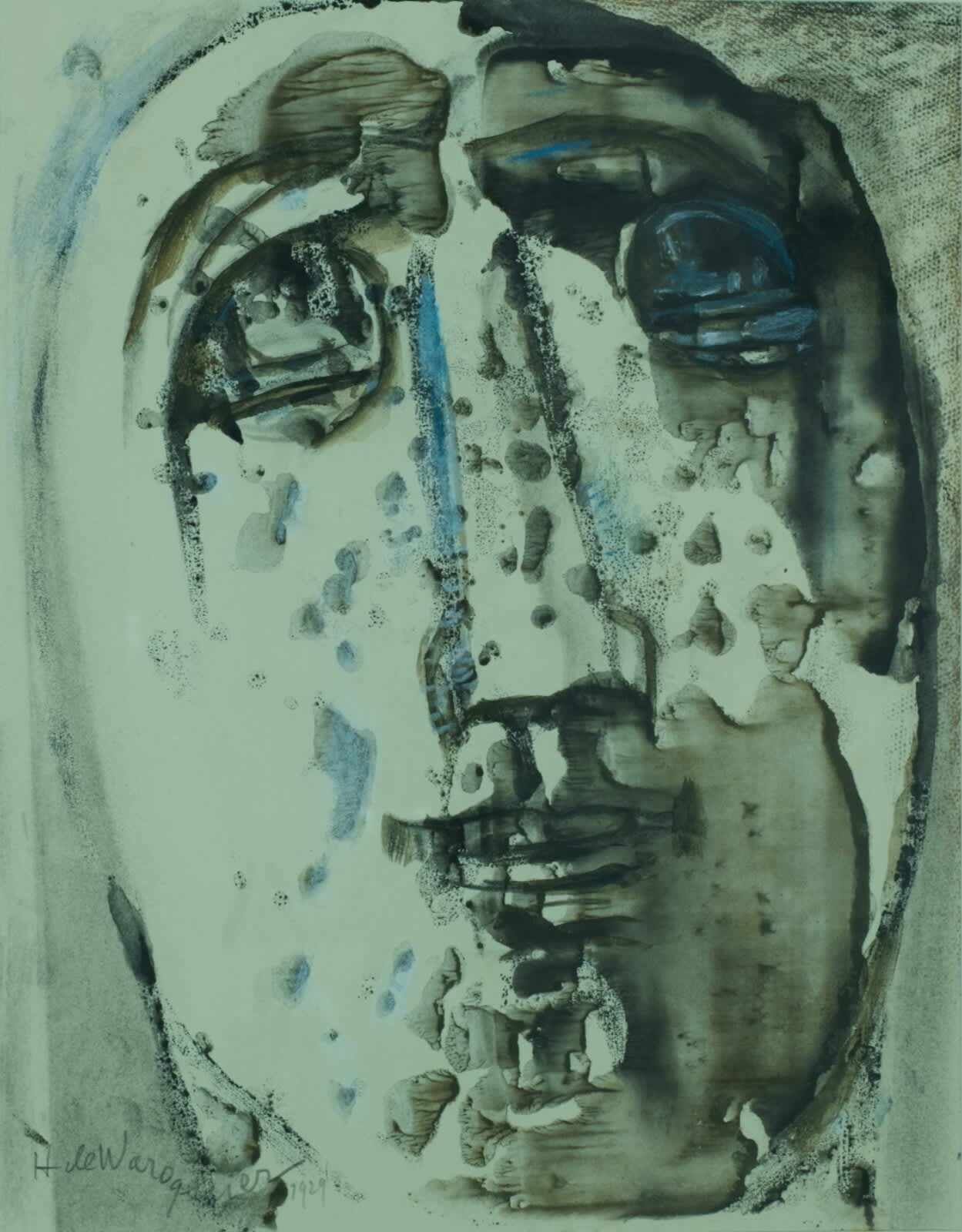Ancien portrait Art déco visage signé Henry de Waroquier aquarelle dessin 1929